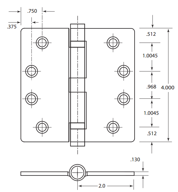 4" x 4" Mortise Hinge